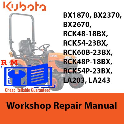 Be the first to review “Kubota BX1870, BX2370, BX2670, RCK48-18BX, RCK54-23BX, RCK60B-23BX, RCK48P-18BX, RCK54P-23BX, LA203, LA243 Workshop Manual”