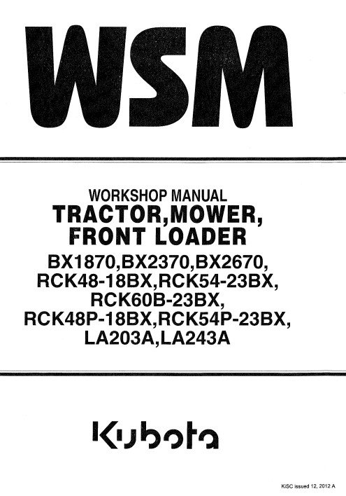 kubota rck54-23bx operators manualKubota BX1870, BX2370, BX2670, RCK48-18BX, RCK54-23BX, RCK60B-23BX, RCK48P-18BX, RCK54P-23BX, LA203, LA243 Workshop Manual