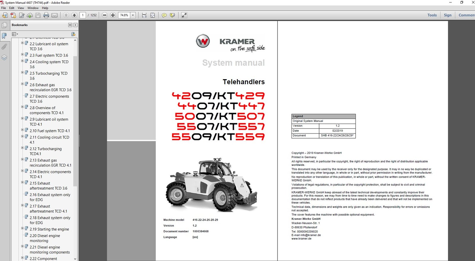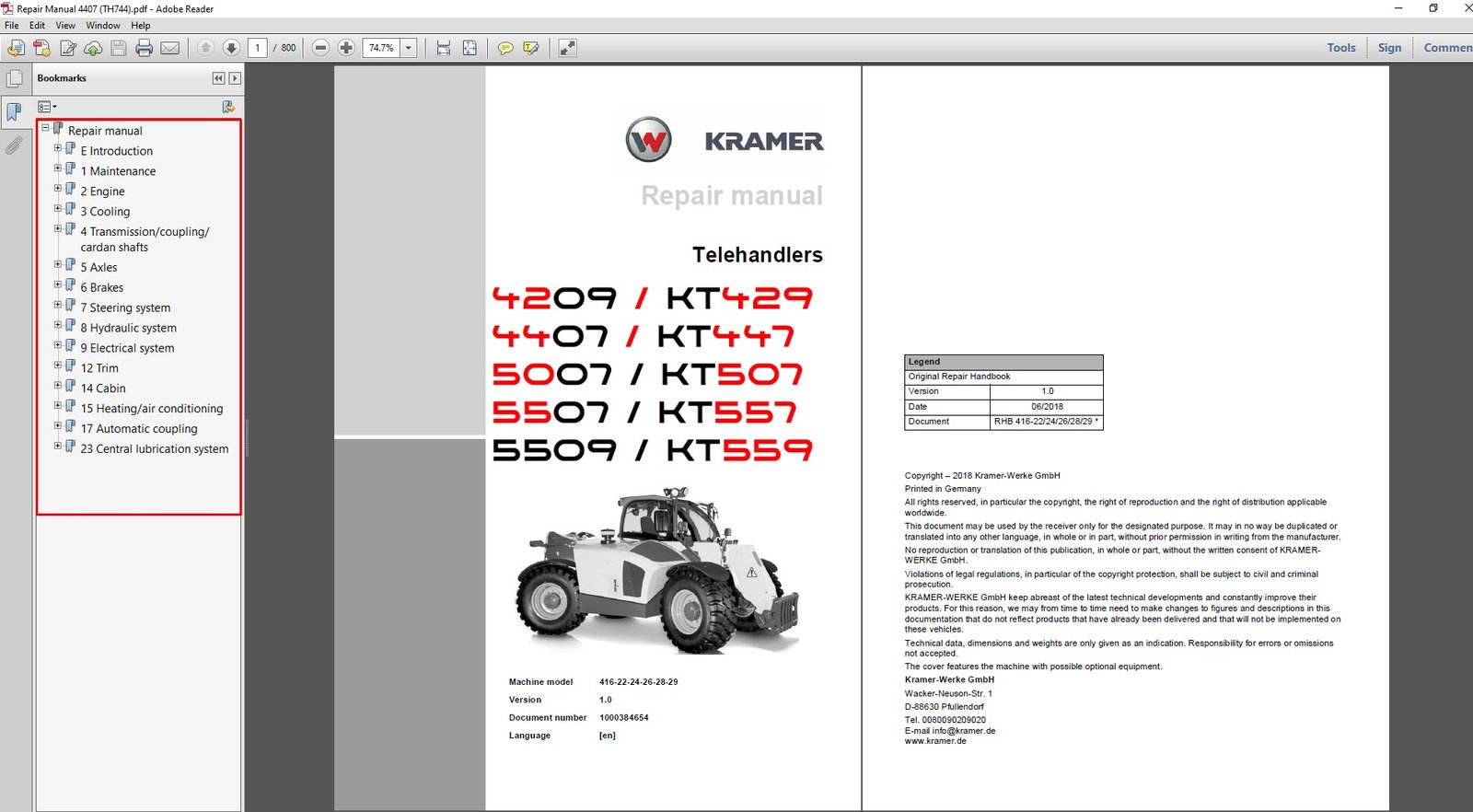 - Models Covered: Wacker Neuson 4407, KT4479 (Kramer) Telehandlers
