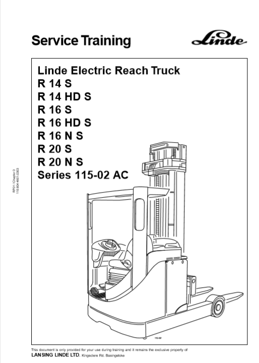 Linde 115 Series ( R14S, R14HD S, R16S, R16HD S, R16N S, R20S, R20N S ) Service Training Manual