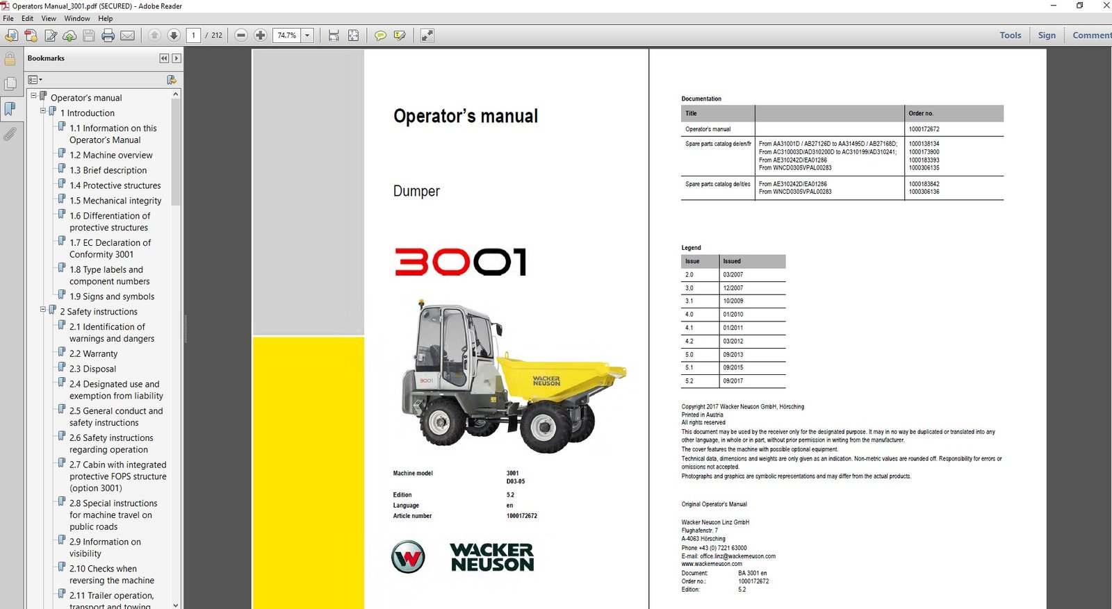 Download the complete Wacker Neuson 3001 Dumper Operator’s Manual in instant PDF format. This essential guide provides clear instructions for safe operation, proper handling, and routine maintenance of your dumper, helping you achieve maximum efficiency and long-term reliability.