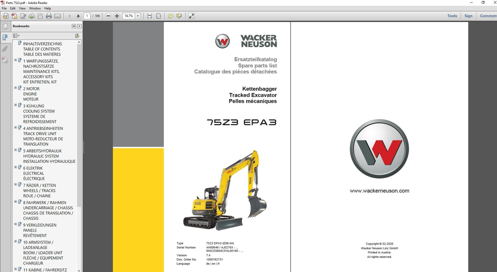 Wacker Neuson 75Z3 Excavator Parts Manual – PDF Download