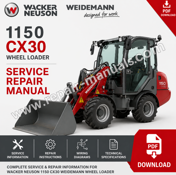 Get complete technical support for your machine with this professional Service Repair Manual for the Wacker Neuson 1150 CX30 Weidemann Wheel Loader. Designed for technicians, mechanics, and equipment owners, this manual provides detailed instructions to maintain, troubleshoot, and repair your wheel loader efficiently.