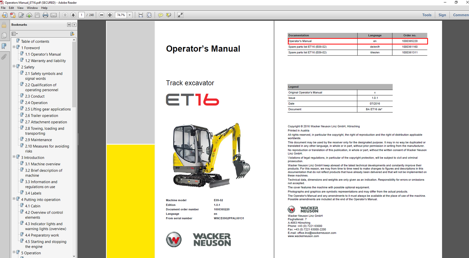 Ensure safe and efficient operation of your machine with this Wacker Neuson ET16 Excavator Operator’s Manual PDF. Designed for equipment owners and operators, this comprehensive manual provides all the essential information needed to operate, maintain, and care for your excavator properly.