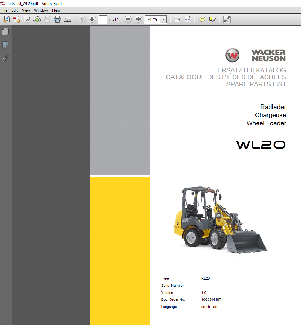 Wacker Neuson WL20 Wheel Loader Parts Manual – PDF Download