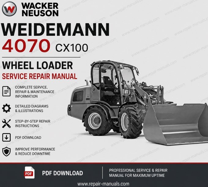 Get instant access to the Wacker Neuson Weidemann 4070 CX80 Wheel Loader Service Repair Manual in high-quality PDF format. This comprehensive workshop manual is designed for technicians, mechanics, and equipment owners who need complete service, maintenance, and repair guidance.